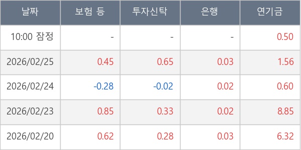 [표] 주요 기관별 순매매량 (단위 만주)