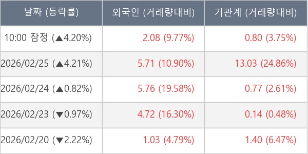 ※ 사모펀드 등 일부 기관의 순매매량은 표시되지 않음