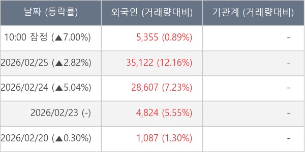 [표] 외국인ㆍ기관 순매매량 (단위 주)