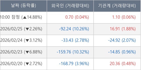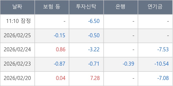 [표] 주요 기관별 순매매량 (단위 만주)