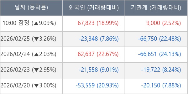 [표] 외국인ㆍ기관 순매매량 (단위 주)