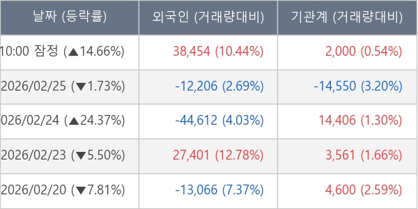 [표] 주요 기관별 순매매량 (단위 주)