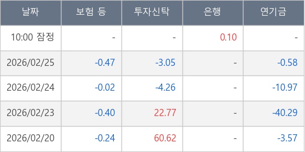 [표] 주요 기관별 순매매량 (단위 만주)