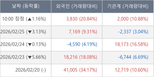 [표] 외국인ㆍ기관 순매매량 (단위 주)