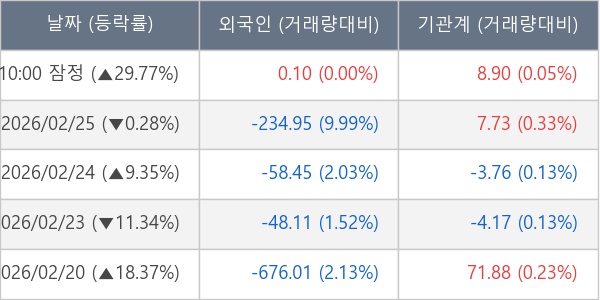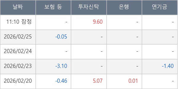 [표] 주요 기관별 순매매량 (단위 만주)