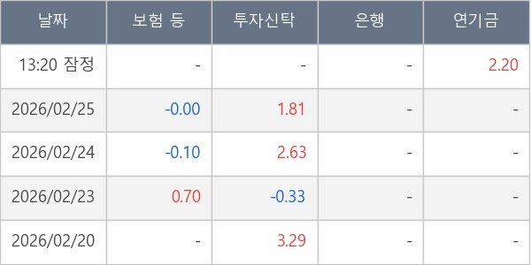 [표] 주요 기관별 순매매량 (단위 만주)