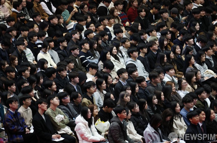 [서울=뉴스핌] 김현우 기자 = 26일 서울 관악구 서울대학교 관악캠퍼스 체육관에서 2026학년도 입학식이 열리고 있다. 2026.02.26 khwphoto@newspim.com