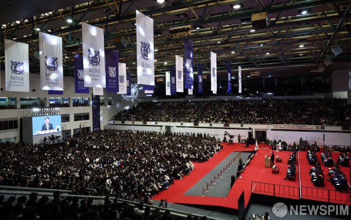 [서울=뉴스핌] 김현우 기자 = 26일 서울 관악구 서울대학교 관악캠퍼스 체육관에서 2026학년도 입학식이 열리고 있다. 2026.02.26 khwphoto@newspim.com