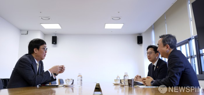 [서울=뉴스핌] 최휘영 문화체육관광부 장관(왼쪽부터),배경훈 부총리 겸 과학기술정보통신부 장관, 임문영 국가인공지능전략위원회 부위원장이 26일 오전 서울 종로구 국립현대미술관 서울관에서 '공정이용 안내서 관계부처 간담회'를 하고 있다.[사진=과학기술정보통신부] 2026.02.26 photo@newspim.com