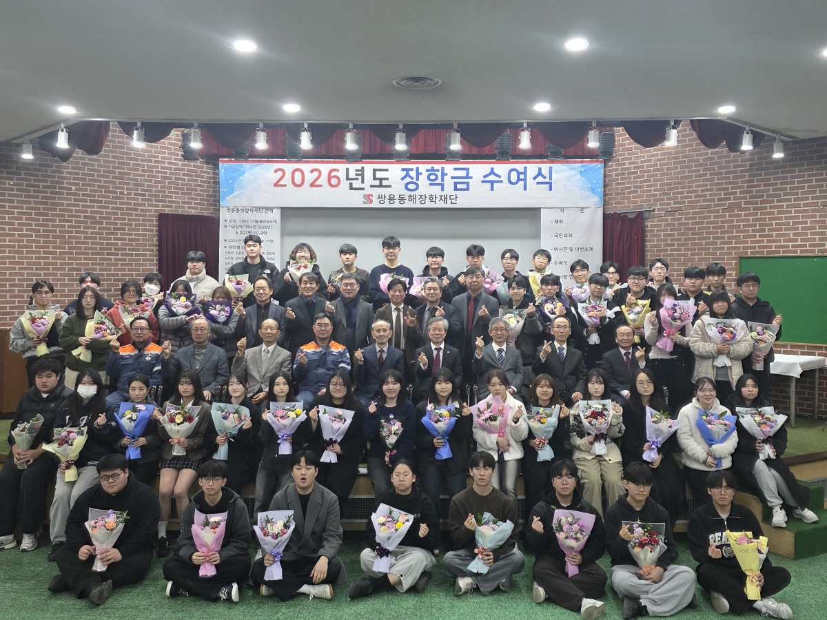 [동해=뉴스핌] 이형섭 기자 = 쌍용씨앤이㈜ 동해공장은 26일 동해공장에서 쌍용동해장학재단 '2026년 장학금 수여식'을 열고 지역 학생 71명에게 총 9160만원의 장학금을 전달했다고 밝혔다.