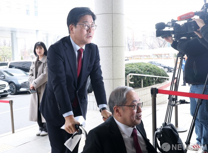 [서울=뉴스핌] 정일구 기자 = 김종혁 전 국민의힘 최고위원이 26일 오후 서울 양천구 서울남부지방법원에서 열린 당 윤리위원회의 징계 효력정지 가처분 신청 심문기일에 출석하고 있다. 2026.02.26 mironj19@newspim.com