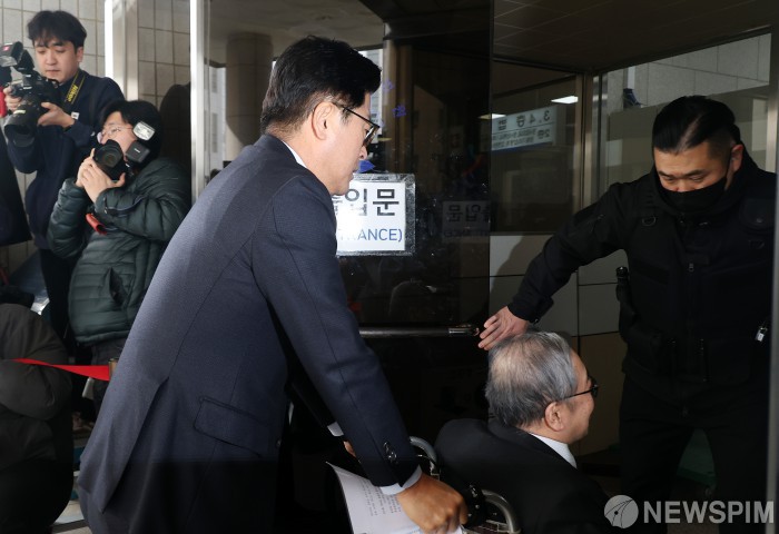 [서울=뉴스핌] 정일구 기자 = 김종혁 전 국민의힘 최고위원이 26일 오후 서울 양천구 서울남부지방법원에서 열린 당 윤리위원회의 징계 효력정지 가처분 신청 심문기일에 출석하고 있다. 2026.02.26 mironj19@newspim.com
