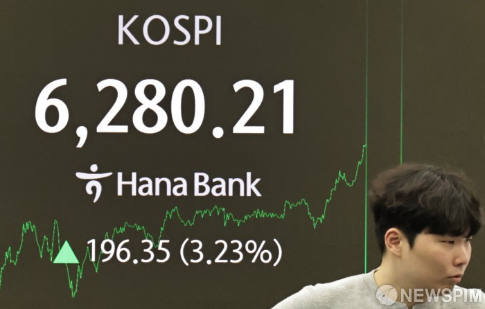[서울=뉴스핌] 양윤모 기자= 26일 오후 코스피가 전장 종가보다 196.35 포인트(3.23%) 상승하며 6280.21로, 코스닥은 22.93 포인트(1.97%) 상승한 1188.18로 거래되는 가운데, 서울 중구 하나은행 을지로본점 딜링룸에서 직원들이 업무를 보고 있다. 서울외환시장에서 달러/원 환율은 전장 대비 4.50원 하락한 1424.90원에 주간거래를 하고 있다. 2026.02.26 yym58@newspim.com