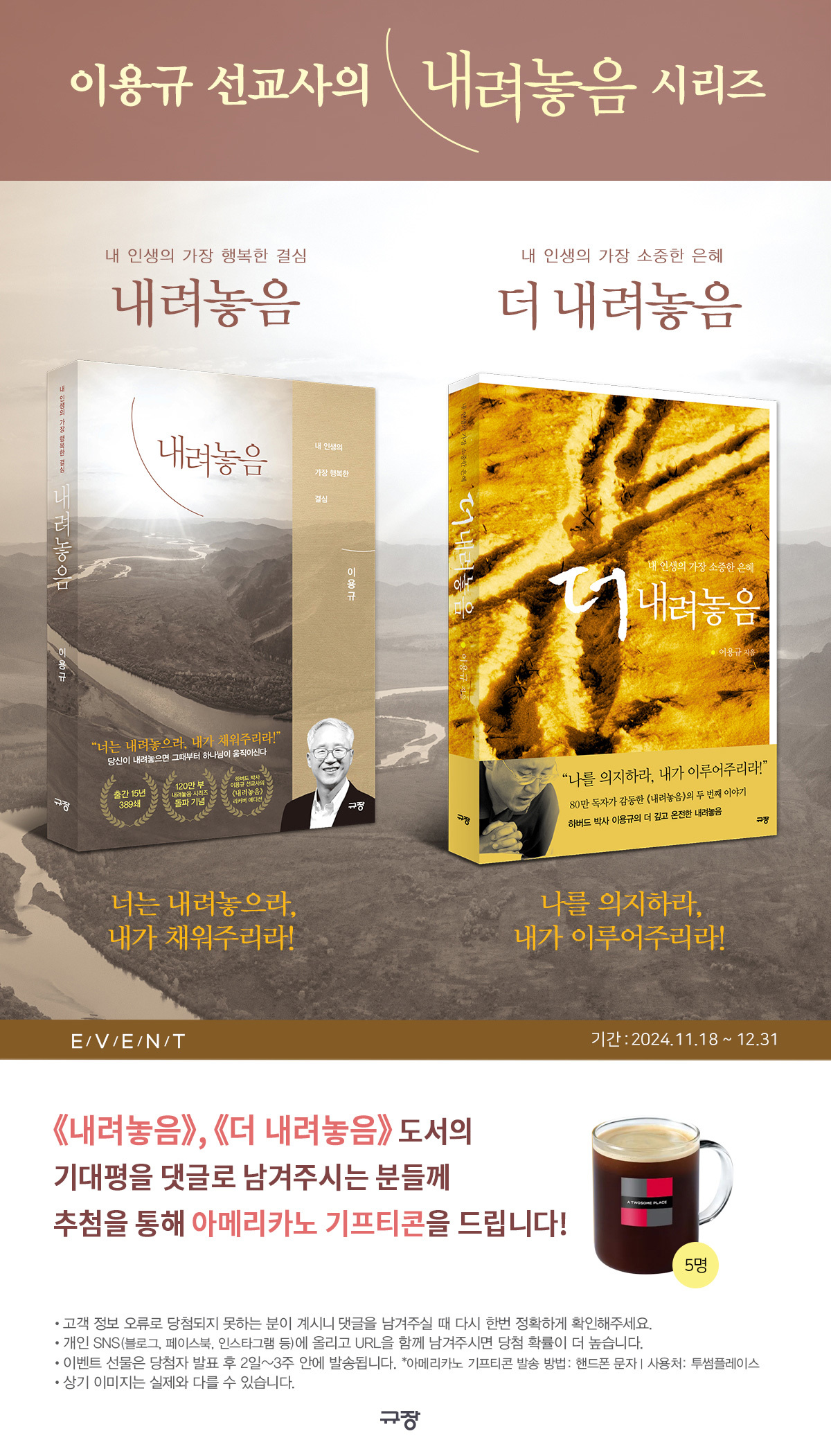 [서울=뉴스핌] 장환수 스포츠전문기자= 이용규 선교사의 '내려놓음' 시리즈. [사진=도서출판 규장] 2026.02.26 zangpabo@newspim.com