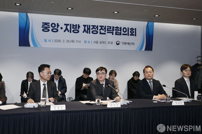 [서울=뉴스핌] 임기근 기획예산처 장관 직무대행 차관이 26일 오전 서울 영등포구 글래드 호텔에서 열린 '중앙·지방정부 재정전략협의회'를 주재, 모두 발언을 하고 있다. [사진= 기획예산처] 2026.02.26 photo@newspim.com
