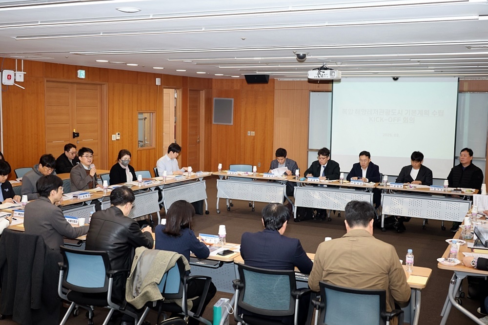 경북 포항시가 26일 시청 소회의실에서 '복합 해양레저관광도시 조성사업 기본계획 킥오프 회의'를 개최하고 있다.[사진=포항시] 2026.02.26 nulcheon@newspim.com