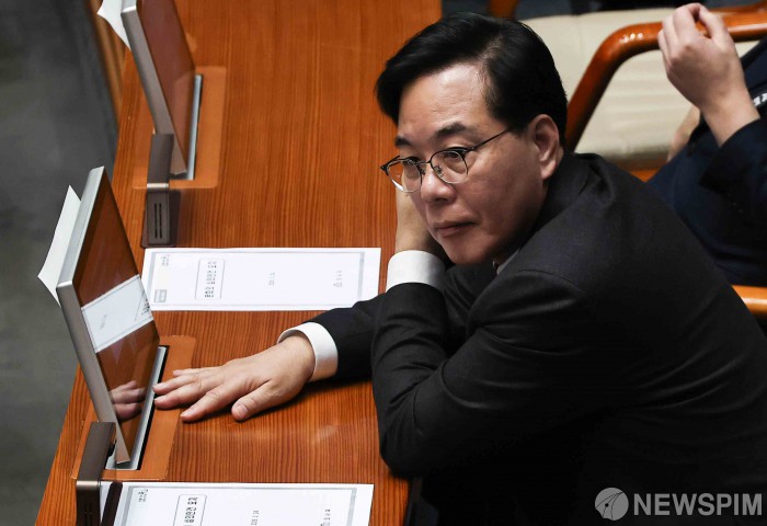 [서울=뉴스핌] 윤창빈 기자 = 송언석 국민의힘 원내대표가 26일 오후 서울 여의도 국회에서 열린 본회의에 참석하고 있다. 2026.02.26 pangbin@newspim.com