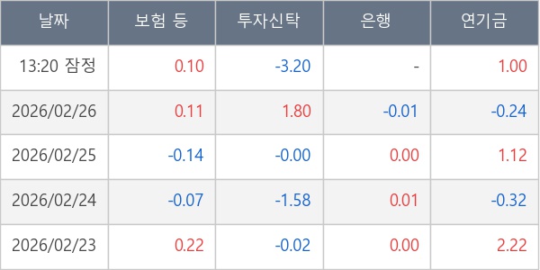 ※ 장중 매매동향은 잠정치이므로 실제 매매동향과 차이가 발생할수 있음