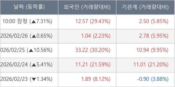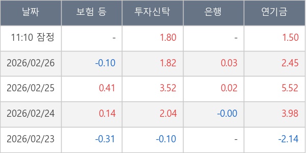 [표] 주요 기관별 순매매량 (단위 만주)