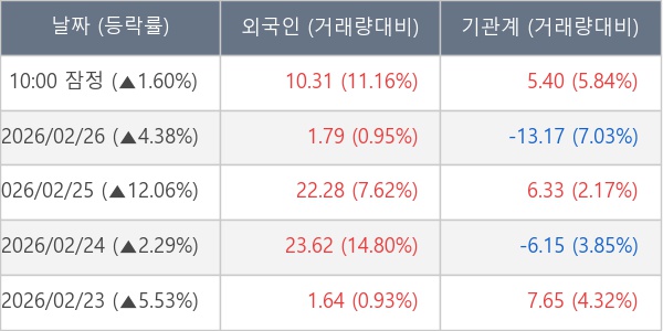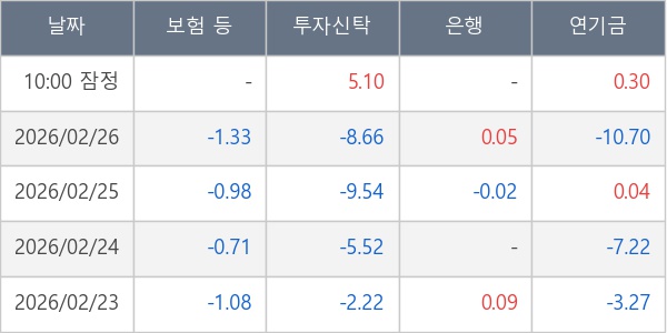 [표] 주요 기관별 순매매량 (단위 만주)