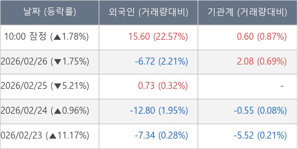 [표] 외국인ㆍ기관 순매매량 (단위 만주)