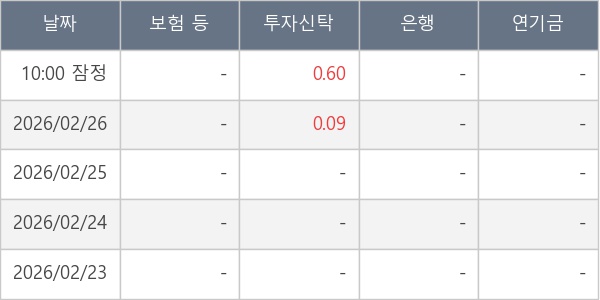 ※ 장중 매매동향은 잠정치이므로 실제 매매동향과 차이가 발생할수 있음