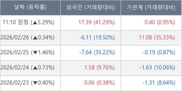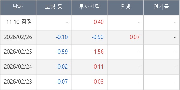 [표] 주요 기관별 순매매량 (단위 만주)