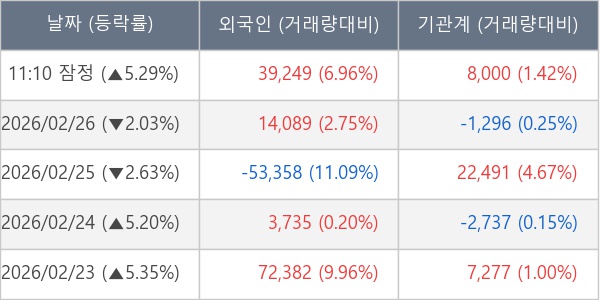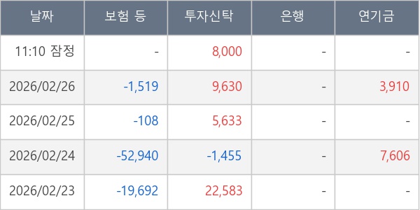 [표] 주요 기관별 순매매량 (단위 주)