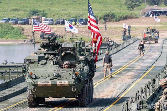 纽斯频通讯社首尔2月27日电 韩国和美国最终达成协议,将在3月9日启动的指挥所演习"自由之盾"(Freedom Shield,FS)期间,按原计划实施22项野外机动训练(FTX)。其中,营级以上实兵机动训练为16项,较去年(51项)减少约三分之二。