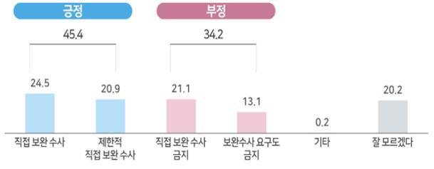 긍정 가운데 24.5%는 직접 보완수사권을, 20.9%는 제한적 수사권을 인정해야 한다고 봤다. 부정의견 가운데 21.1%는 직접 보완수사만 금지해야 한다고 응답했고 나머지 13.1%는 보완수사 요구까지 전면 금지해야 한다고 답했다.