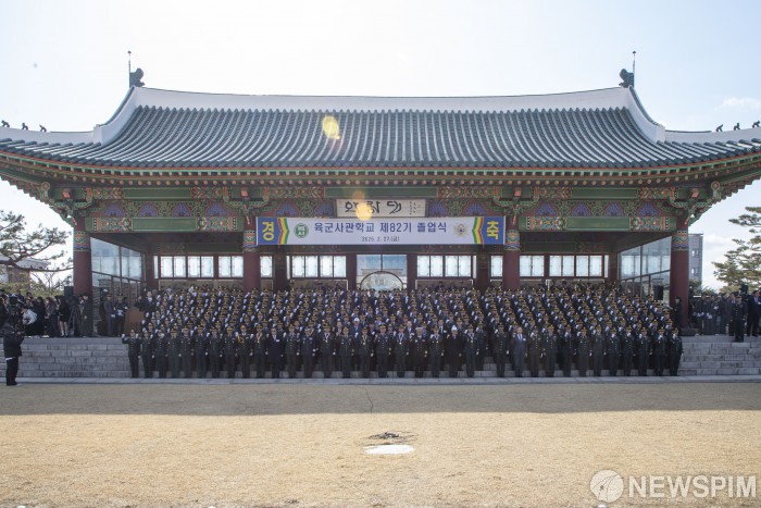 [서울=뉴스핌] 27일 서울 노원구 육군사관학교에서 열린 제82기 졸업식에서 졸업생들이 육군참모총장 등 주요직위자들과 기념촬영을 하고 있다. [사진=국방부] 2026.02.27 photo@newspim.com