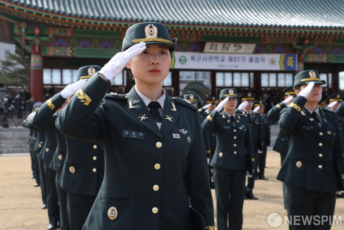 [서울=뉴스핌] 27일 서울 노원구 육군사관학교에서 열린 제82기 졸업식에서 졸업생들이 경례를 하고 있다. [사진=국방부] 2026.02.27 photo@newspim.com