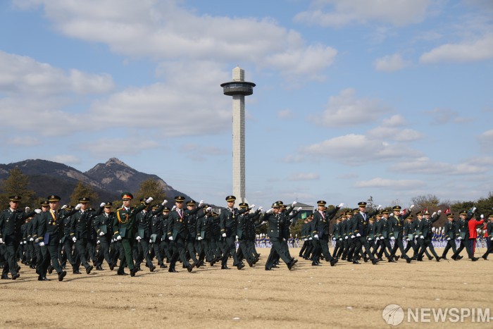 [서울=뉴스핌] 27일 서울 노원구 육군사관학교에서 열린 제82기 졸업식에서 졸업생들이 분열을 하고 있다. [사진=국방부] 2026.02.27 photo@newspim.com