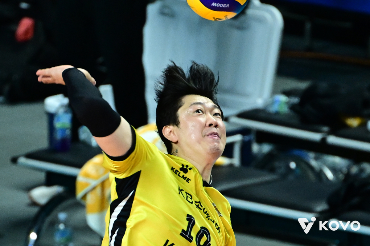 1세트는 KB의 분위기였다. 비예나가 3연속 서브 에이스를 터뜨리며 초반 기선을 제압했고, 점수 차를 21-16까지 벌렸다. 이후 차영석의 블로킹으로 세트를 마무리하며 기분 좋은 출발을 알렸다.