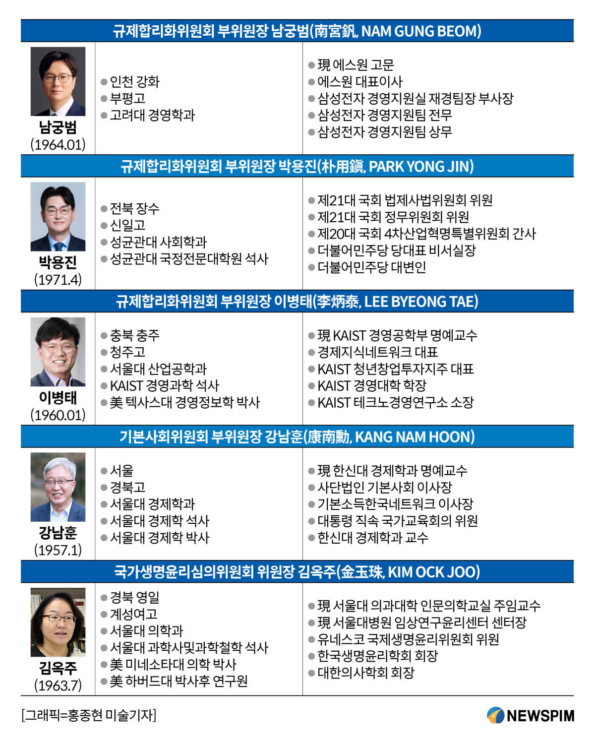 총리급인 규제합리화위원회 부위원장에 남궁범 에스원 고문과 박용진 전 민주당 의원, 이병태 KAIST 명예교수가 각각 임명됐다. 남궁 부위원장은 삼성전자에서 30년 이상 근무하고 보안전문업체 대표이사를 역임한 경영과 재무 전문가다.