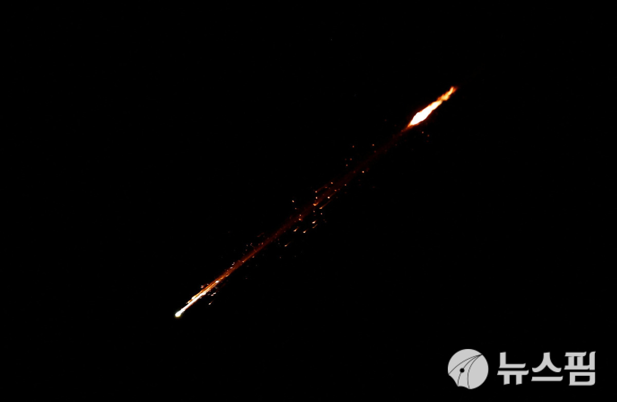 3일(현지시간) 새벽 이스라엘 점령 서안지구 헤브론에서 바라본 이란발 미사일. [사진=로이터 뉴스핌]
