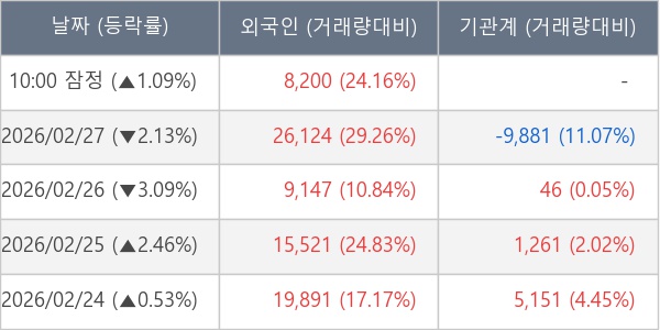 [표] 외국인ㆍ기관 순매매량 (단위 주)