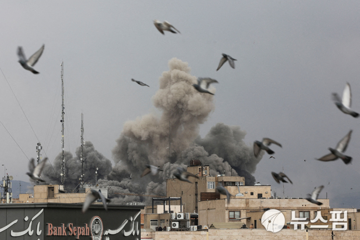 [사진] 미국과 이스라엘의 폭격으로 검은 연기가 치솟는 건물