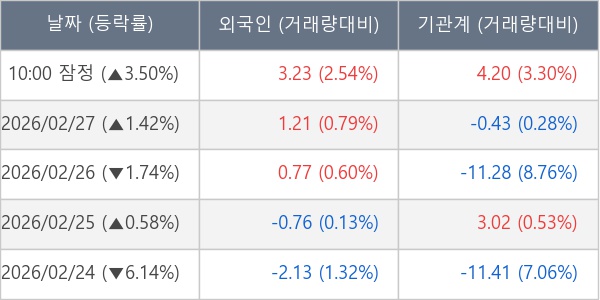 [서울=뉴스핌] 로보뉴스 = 03일 10시 15분 현재 스피어(347700)는 외국인과 기관이 각각 3.23 만 주, 4.20 만 주 순매수(잠정) 하면서 전일 대비 3.50% (현재가 44,400원) 상승하고 있다.