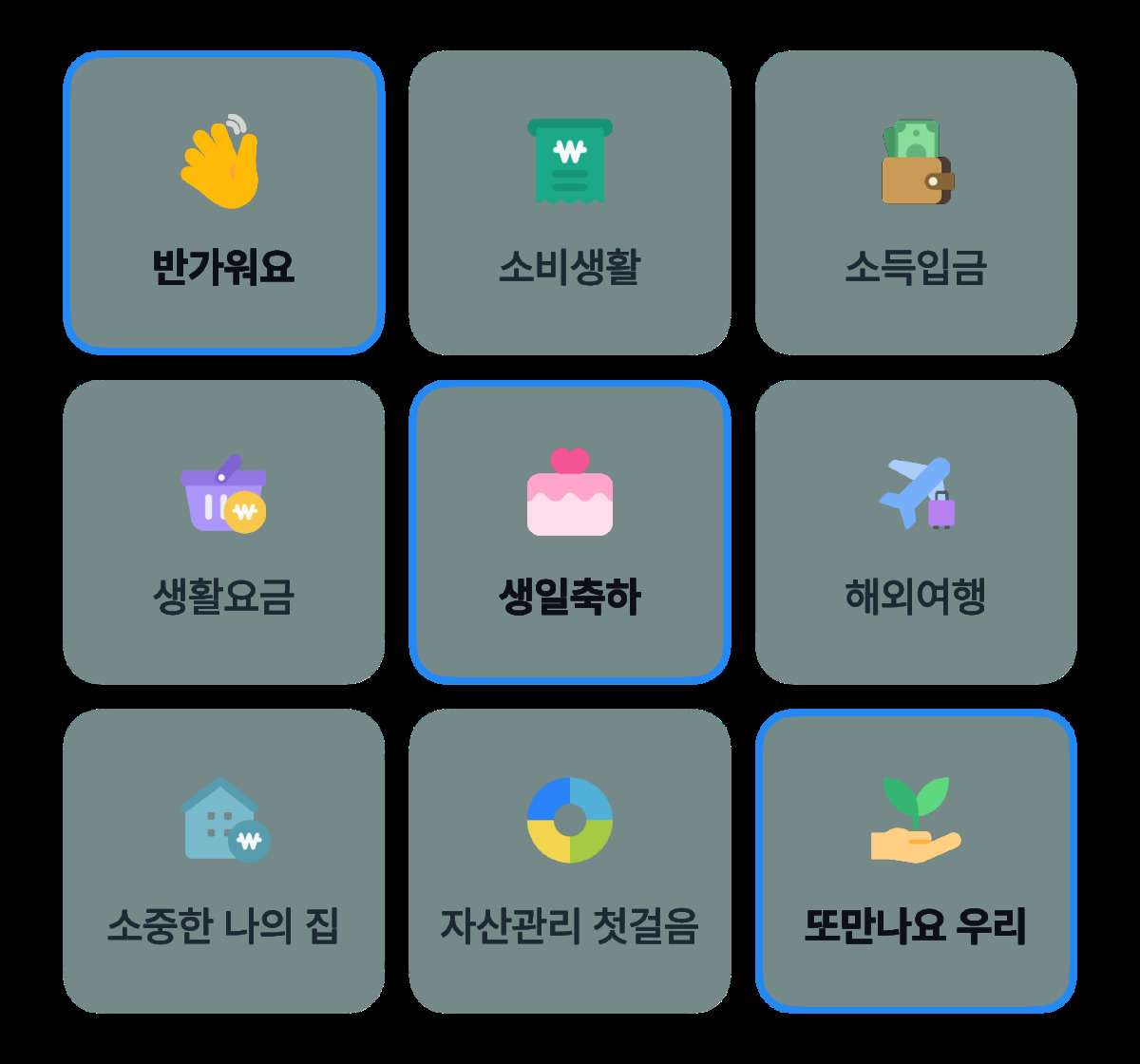 빙고판은 △반가워요 △소비생활 △소득입금 △생활요금 △생일축하 △해외여행 △소중한 나의 집 △자산관리 첫걸음 △또만나요 우리 등 총 9개의 빙고 칸으로 구성됐으며, 각 미션을 수행해 완성된 빙고 줄 수에 따라 우대금리가 차등 적용된다.
