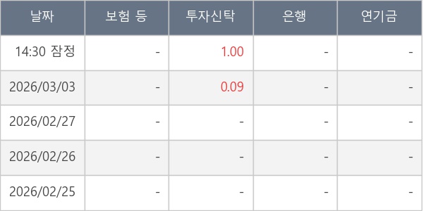 [표] 주요 기관별 순매매량 (단위 만주)