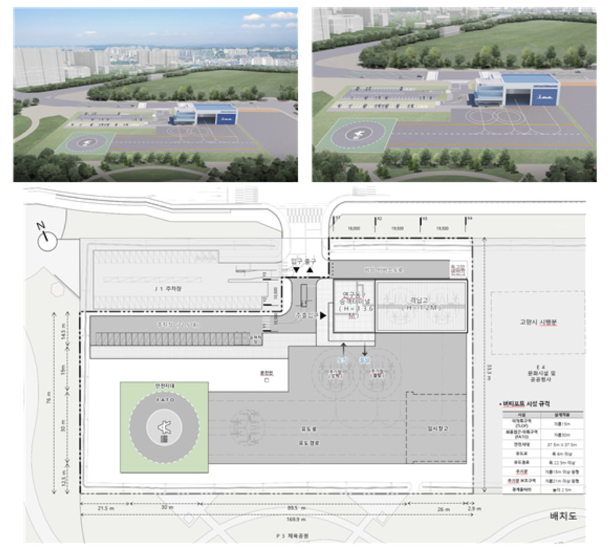 단순 버티포트를 넘어 '상용화형 도심항공 종합실증 거점'으로 조성된다. 올해 안에 이착륙장을 우선 구축해 도심 운항안전성 검증에 착수한다. 2027년까지 여객터미널, 격납고 등 상설 건축물을 포함한 종합인프라를 단계적으로 확충할 계획이다. 규모는 ▲대지 1만5085㎡ ▲이착륙장 1곳 ▲계류장 2곳 ▲여객터미널 및 격납고 등 총 1836㎡이다.