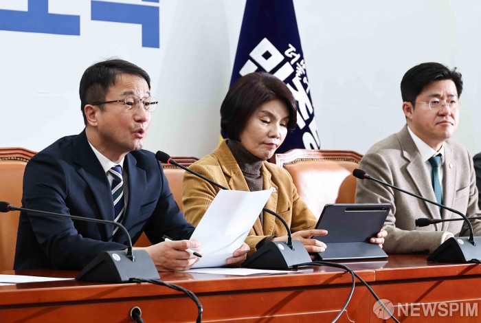 [서울=뉴스핌] 윤창빈 기자 = 한병도 더불어민주당 원내대표가 5일 오전 서울 여의도 국회에서 열린 정책조정회의에서 모두발언을 하고 있다. 2026.03.05 pangbin@newspim.com