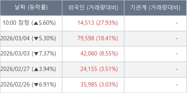 [표] 외국인ㆍ기관 순매매량 (단위 주)