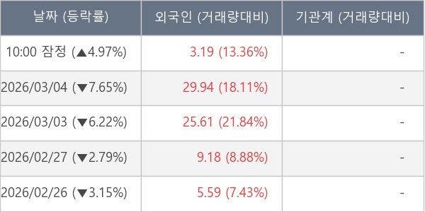 [표] 외국인ㆍ기관 순매매량 (단위 만주)