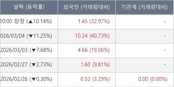 [표] 외국인ㆍ기관 순매매량 (단위 만주)