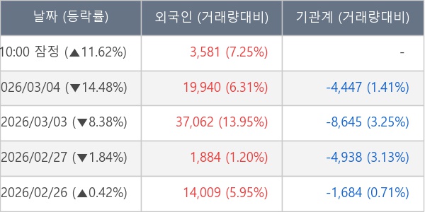 [표] 외국인ㆍ기관 순매매량 (단위 주)