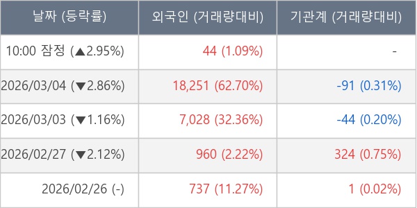 [표] 외국인ㆍ기관 순매매량 (단위 주)
