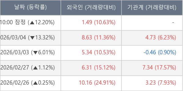 [표] 외국인ㆍ기관 순매매량 (단위 만주)