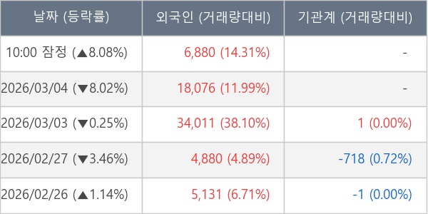 [표] 외국인ㆍ기관 순매매량 (단위 주)